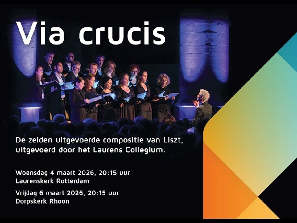 De veertigdagentijd nodigt uit tot bezinning. Een handreiking daartoe doet het Laurens Collegium uit Rotterdam met Liszts Via crucis, over de kruisweg van Jezus. Aan het eind van zijn leven keerde Liszt in zijn muziek terug tot de basis, zelfs tot het minimalistische aan toe. Soberheid karakteriseert nu zijn werken, in plaats van virtuoze overdaad. Inspiratie doet hij op uit oude componeertechnieken, Latijnse hymnen en liederen uit de reformatie, zoals O Haupt voll Blut und Wunden. In combinatie met Gesualdo’s responsoriën, geschreven voor de Stille Week, ontstaat een fascinerend muzikaal verhaal. Met het motet Christus factus est van Bruckner besluiten wij dit concert, klinkt een antwoord op het waarom van het lijden en is er een perspectief op Pasen.