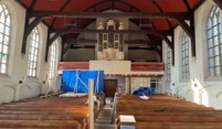 Binnen in het kerkgebouw valt het gewelf op met haar ossenbloed rode kleur. De muren zijn grauw gepleisterd en ongeverfd. Zware eikenhouten binten rusten op de in de zijmuren ingemetselde muurstijlen. Voor in het koor bevonden zich drie ramen, waardoor de gemeente het morgenlicht vanuit het oosten zag binnenvallen. Die ramen waren bedoeld om het zicht te behouden op Jeruzalem. Daarop oriënteerde de gemeente zich. Het oosten, waar de dag van onze Heer Jezus Christus zal beginnen als Hij verschijnt om de schapen en de bokken te scheiden en een nieuwe hemel en een nieuwe aarde te scheppen.
