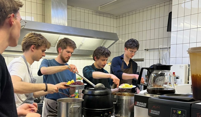 Jongeren koken een diner voor alle ouderen uit de gemeente