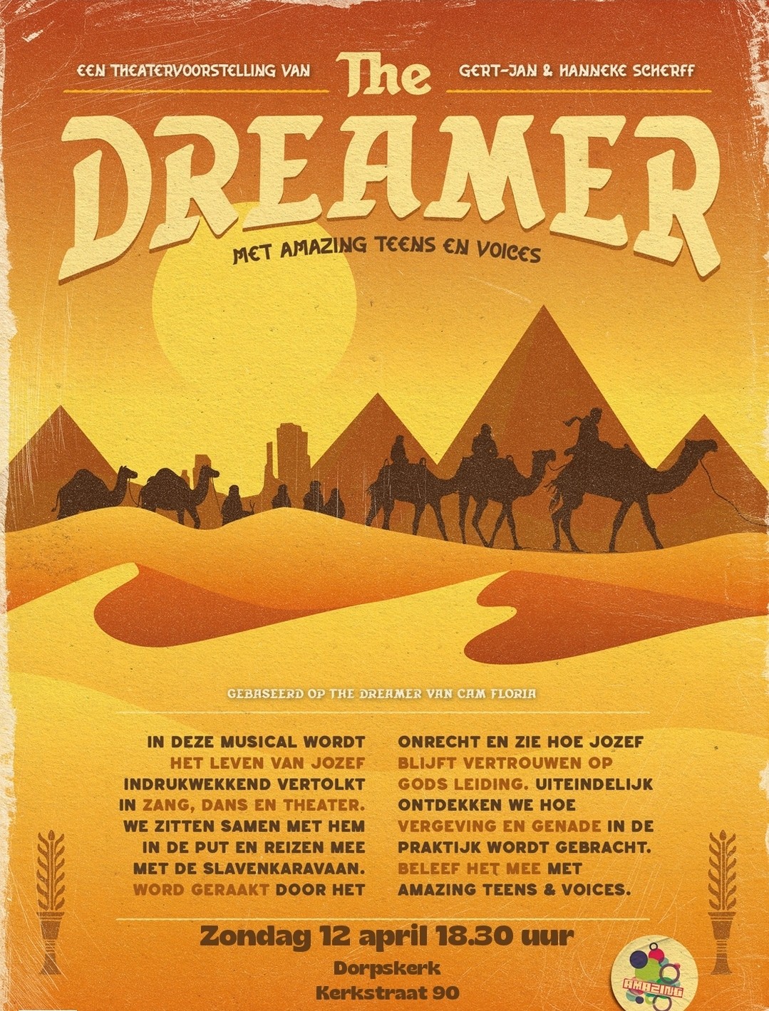 In deze musical wordt het leven van Jozef indrukwekkend vertolkt in zang, dans en theater. We zitten samen met hem in de put en reizen mee met de slavenkaravaan. Word geraakt door het onrecht en zie hoe Jozef blijft vertrouwen op Gods leiding. Uiteindelijk ontdekken we hoe vergeving en genade in de praktijk wordt gebracht. Beleef het mee met Amazing Teens & Voices